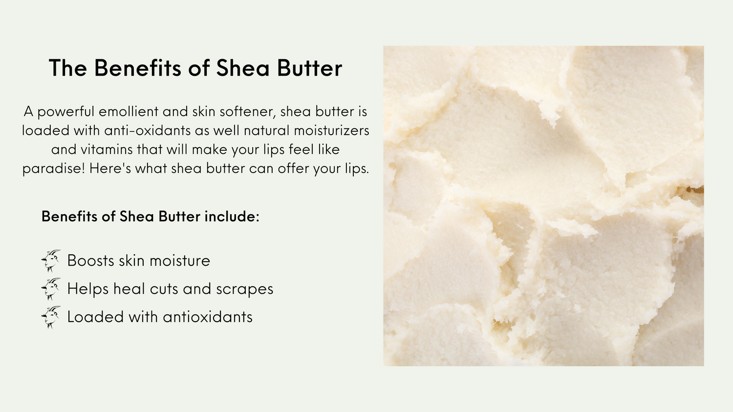 Ingredients: Shea Butter (Butyrospermum Parkii), Beeswax (Cera Alba), Vitamin E Oil (Tocopherol), Flavor Oil